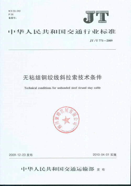 JT-T 771-2009 無粘結(jié)鋼絞線斜拉索技術(shù)條件